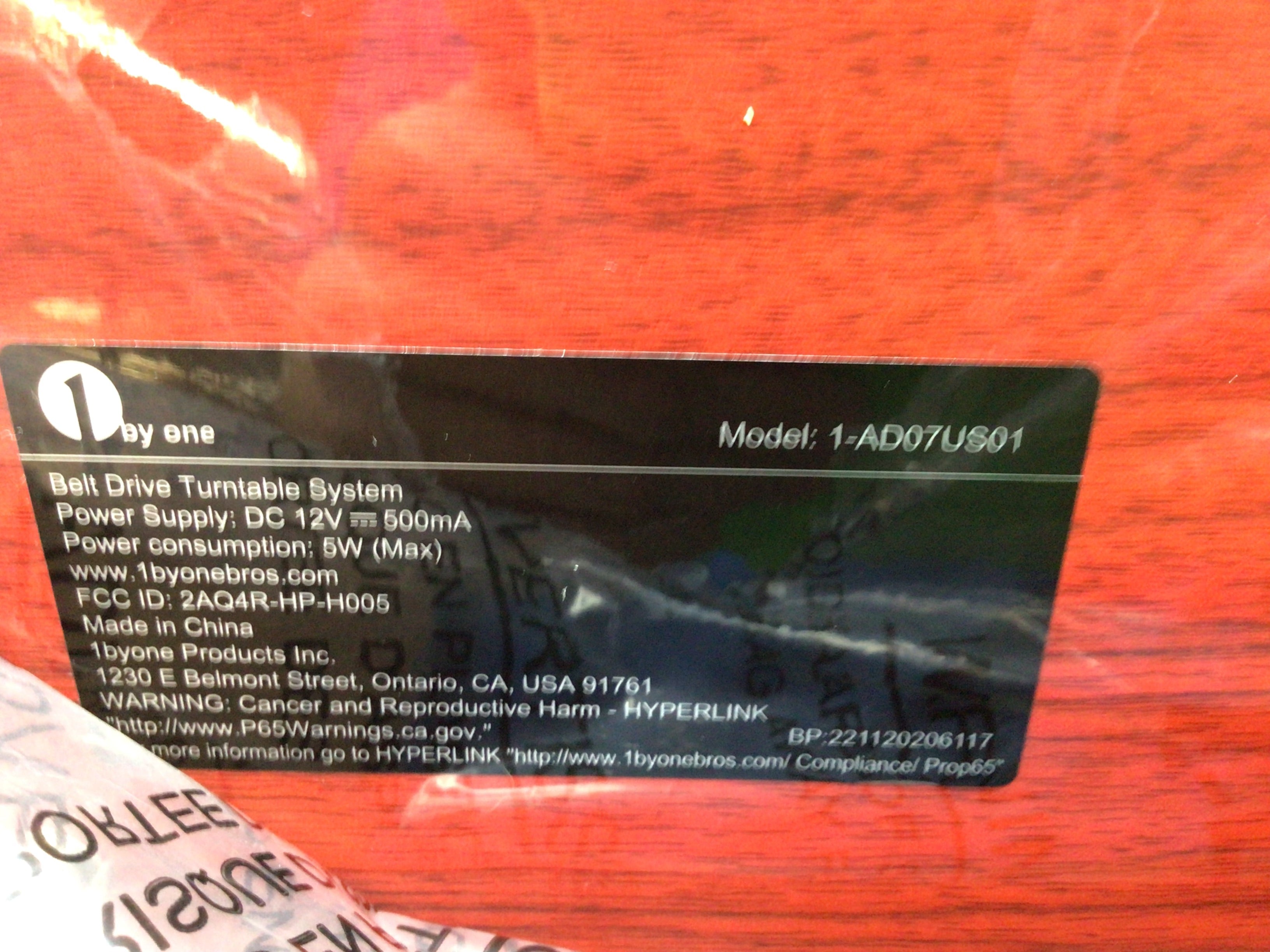 1 BY ONE Belt Drive Turntable, Bluetooth, Phono, USB, Vinyl Record 33/45 RPM (8100512366830)