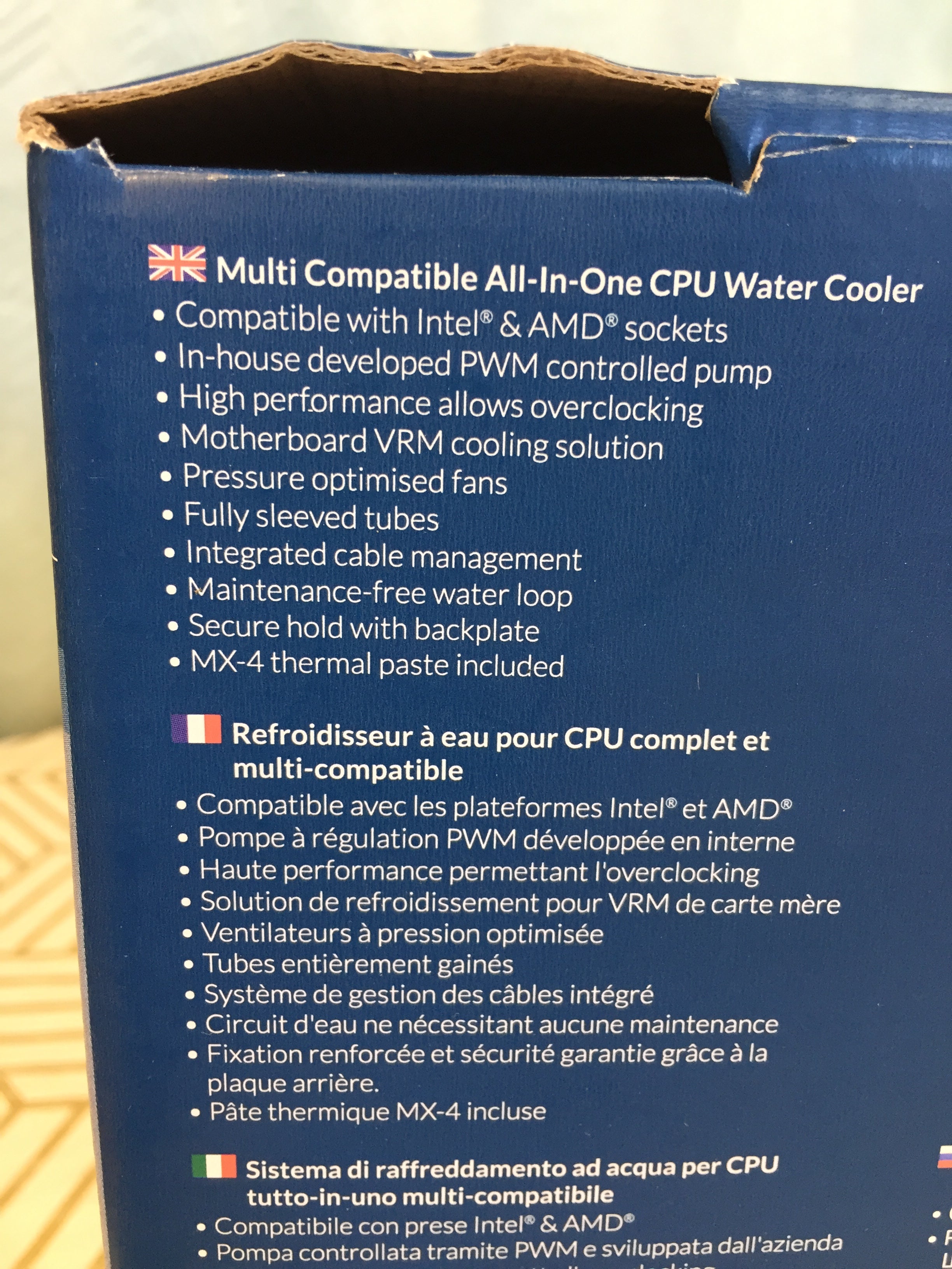 - INTEGRATED CABLE MANAGEMENT: The PWM-cable of the fans are integrated into the sleeved tubing. Thus there is only one short cable visible from the pump to motherboard replacing the usual cable mess