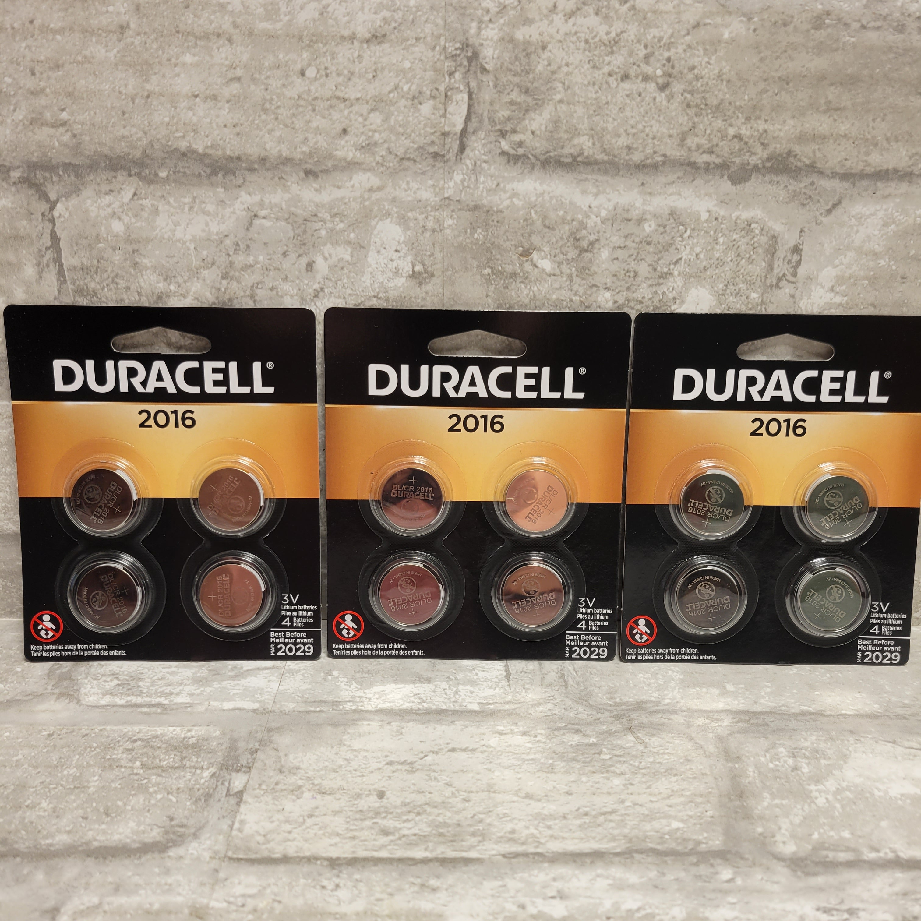 New, Unused. Sold as a 3 pack, each pack has 4 batteries, so 12 batteries total. Expires March 2029. See images for item condition.