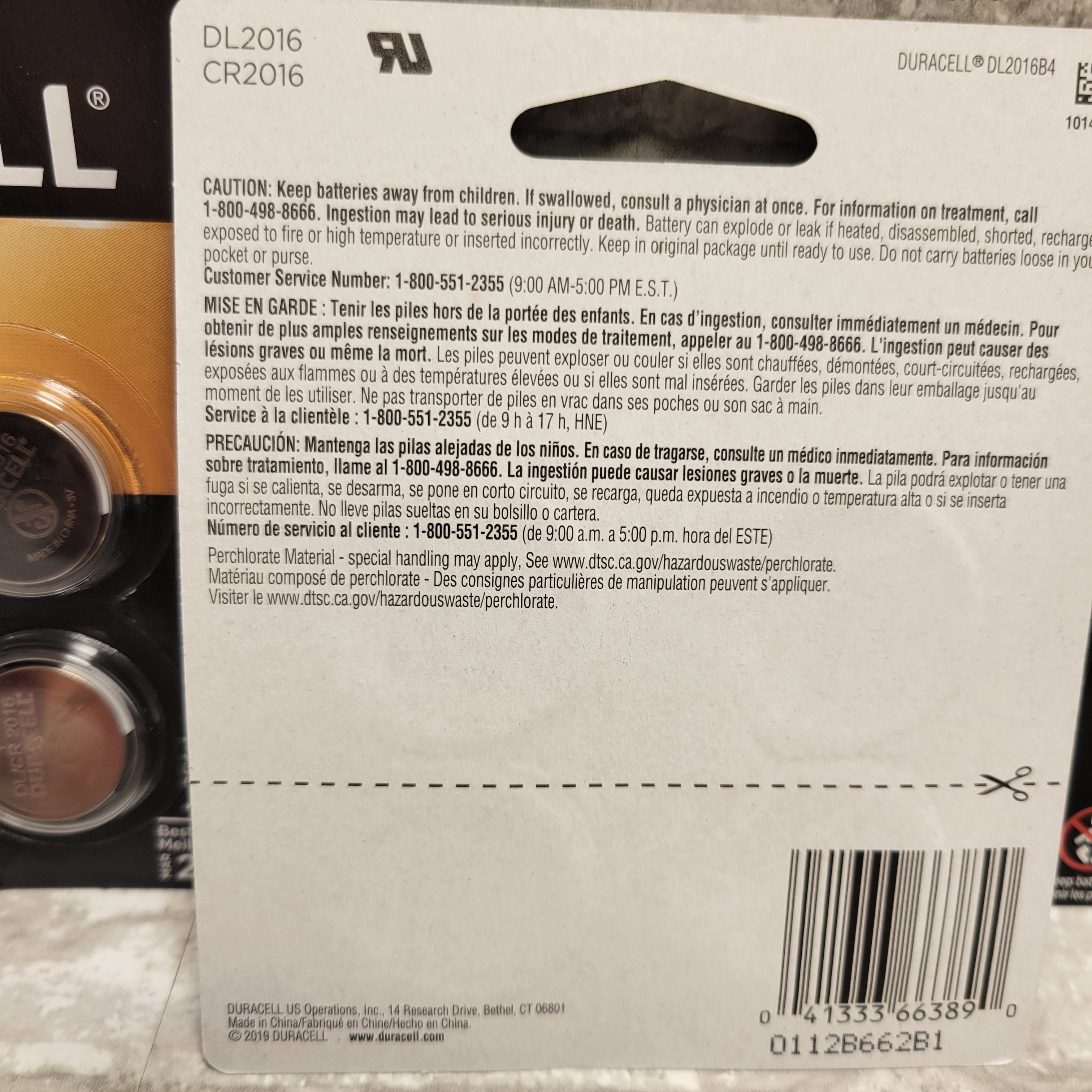 Duracell CR2016 3V Lithium Coin Cell Battery, 3 Packs of 4