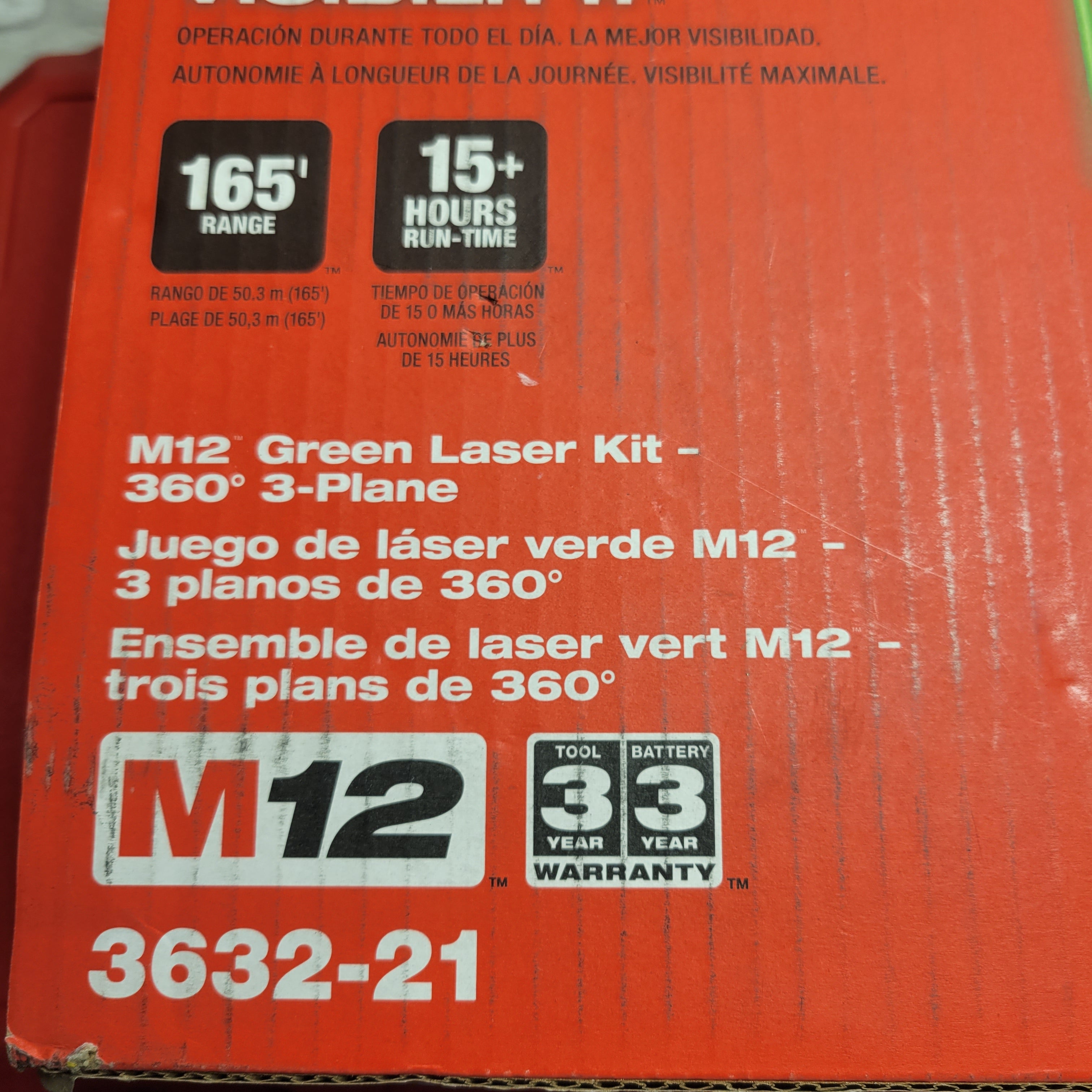Milwaukee 3632-21 M12 12V Lithium-Ion Cordless Green 3-Plane Laser Level Kit