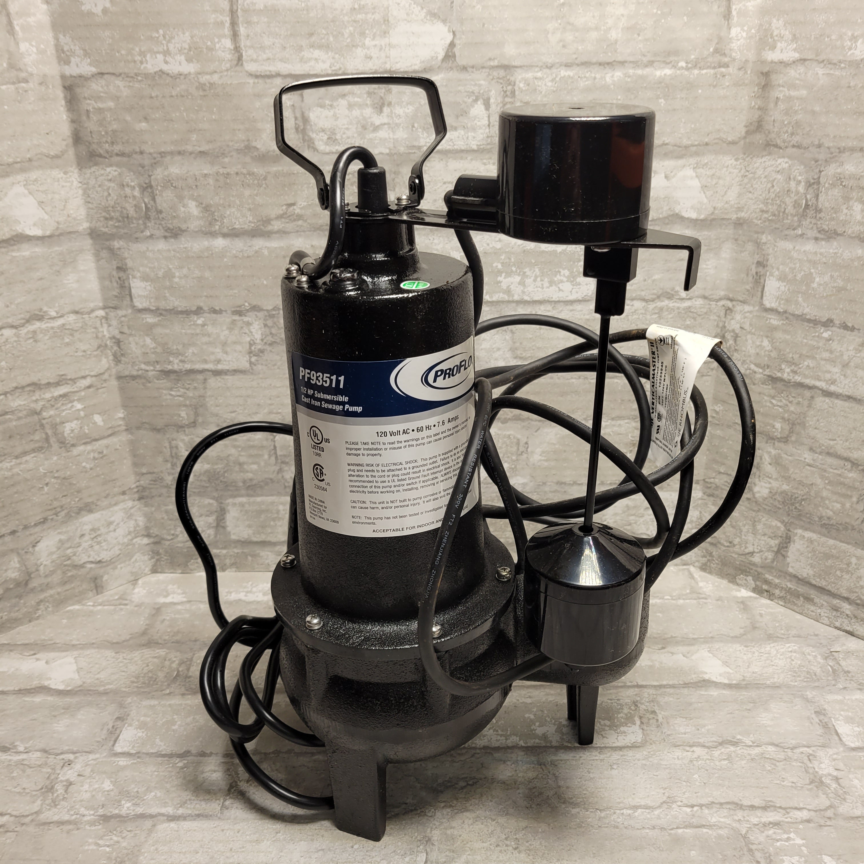 PROFLO PF93511 1/2 HP Cast Iron Sewage Pump with Vertical Switch