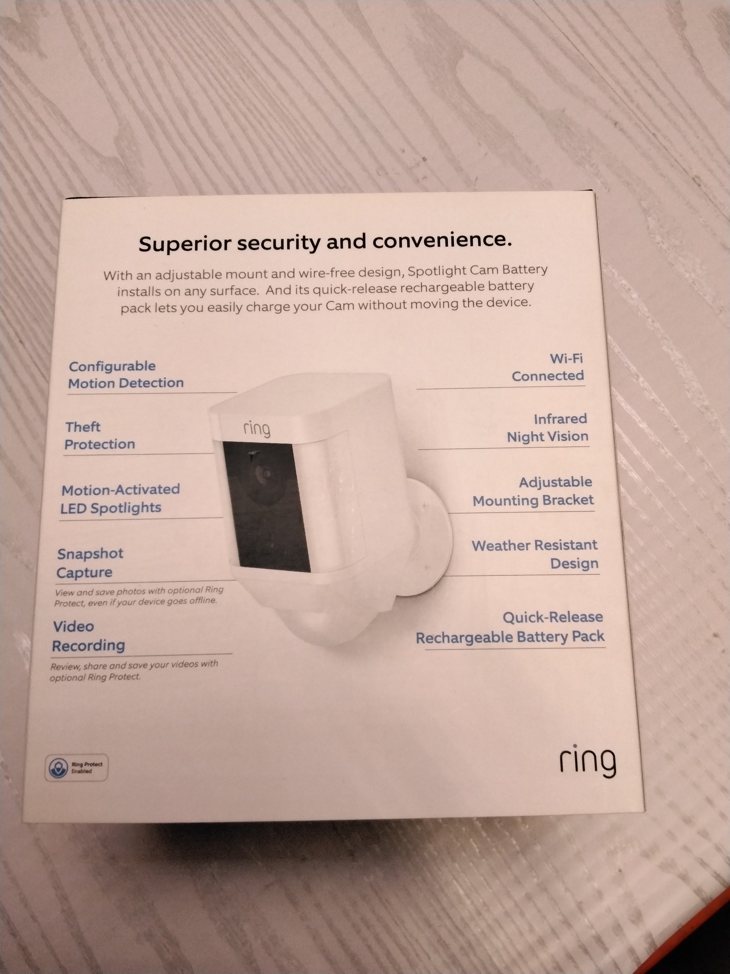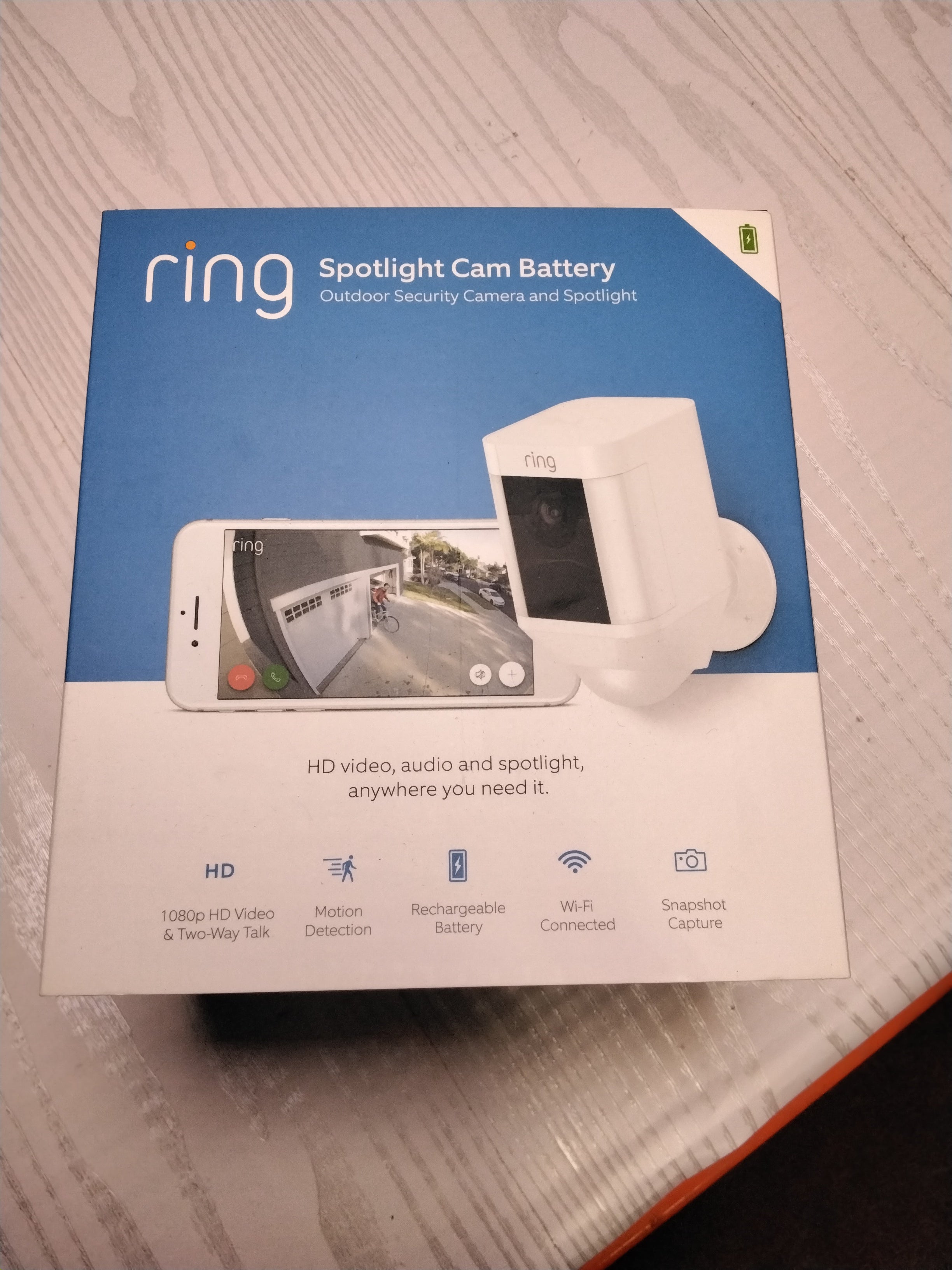 Ring Spotlight Cam Battery HD Security Camera with Built Two-Way Talk and a Siren Alarm, White, Works with Alexa