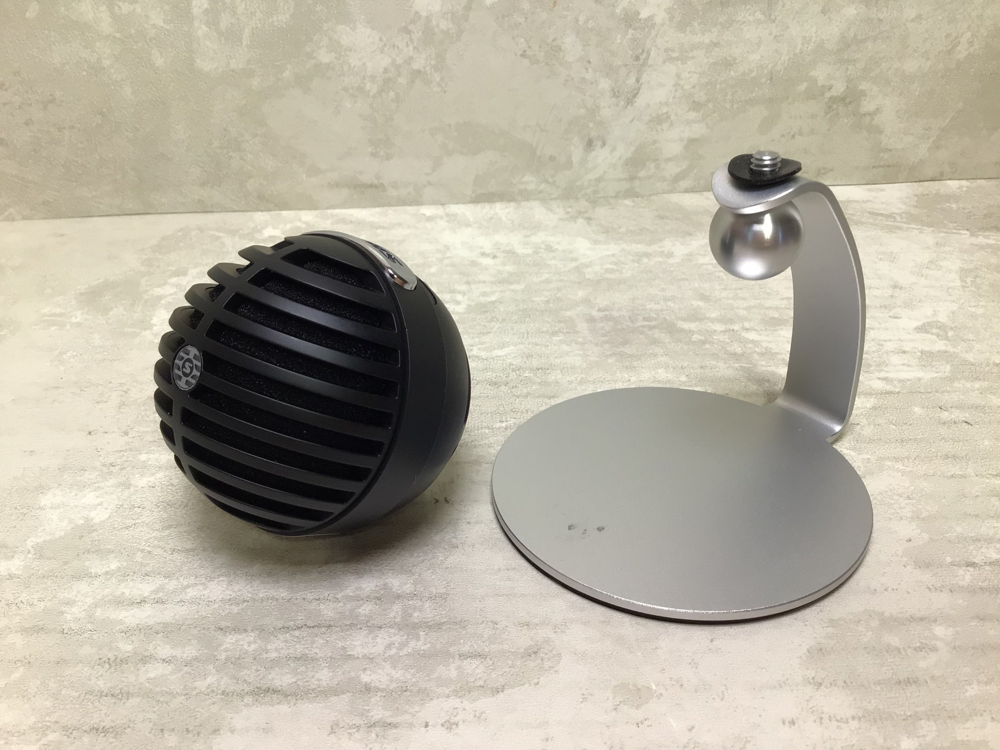 - INCLUDED FULLY ADJUSTABLE ALUMINUM DESKTOP STAND: Included anodized aluminum desktop stand with adjustable microphone angle for optimal placement