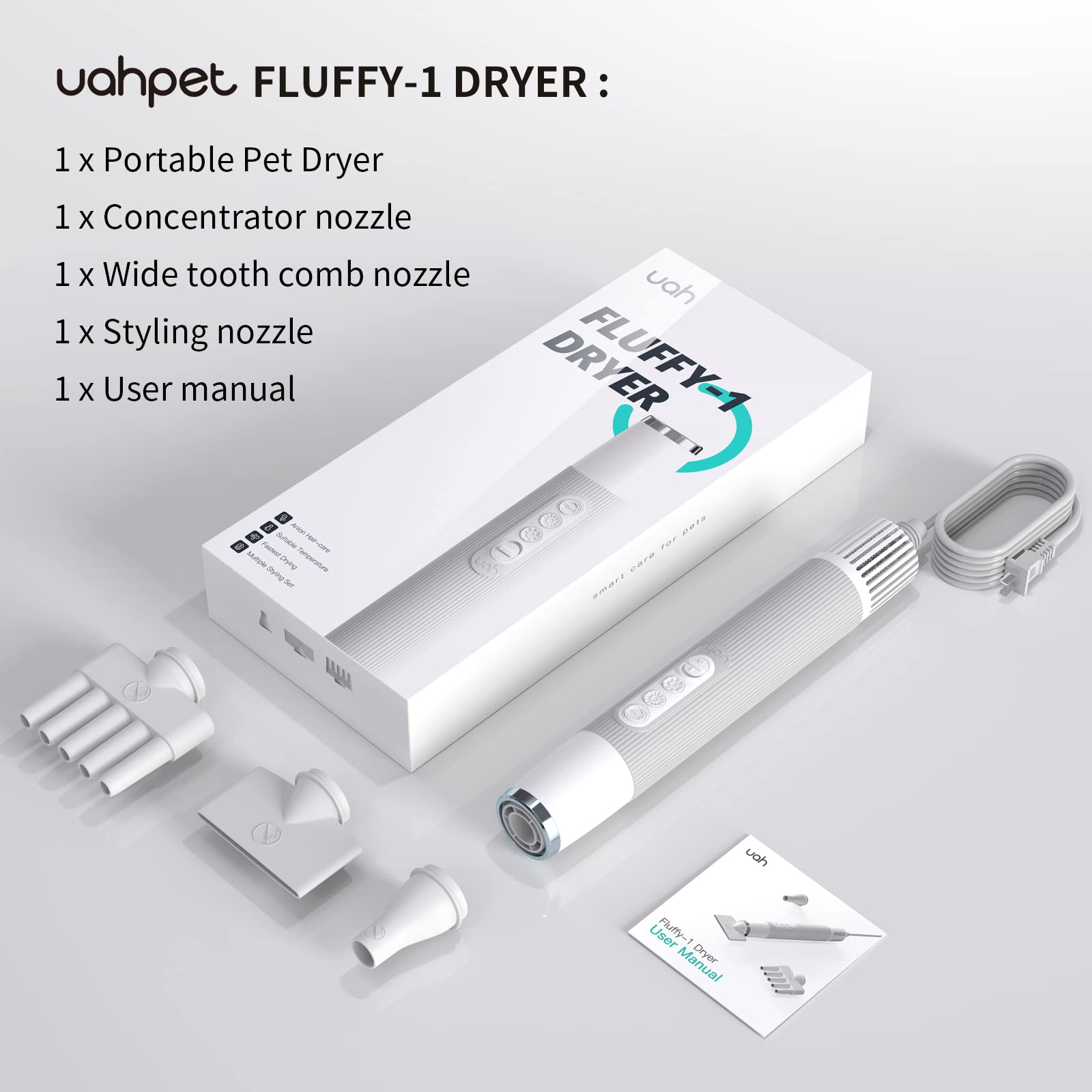 uahpet Pet Dryer for Dog, Portable Handheld Pet Grooming Hair Dryer Less Noise (8035398123758)
